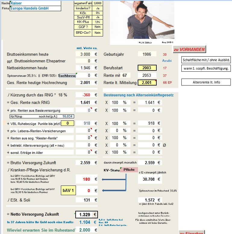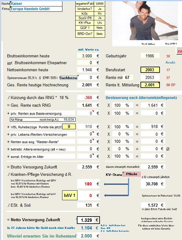ins Berufsleben gestartet ist, und,wie hoch ggf. seine staatl. Rente lt. Renteninfo ist.